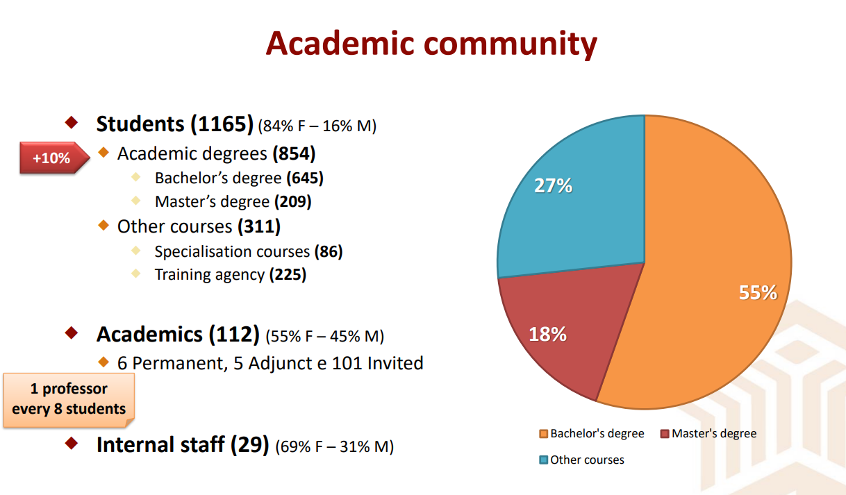 Secondo l'ultima indagine di follow up occupazionale dei laureati di IUSTO (luglio 2021), il 50% ha trovato lavoro a 12 mesi dalla laurea.